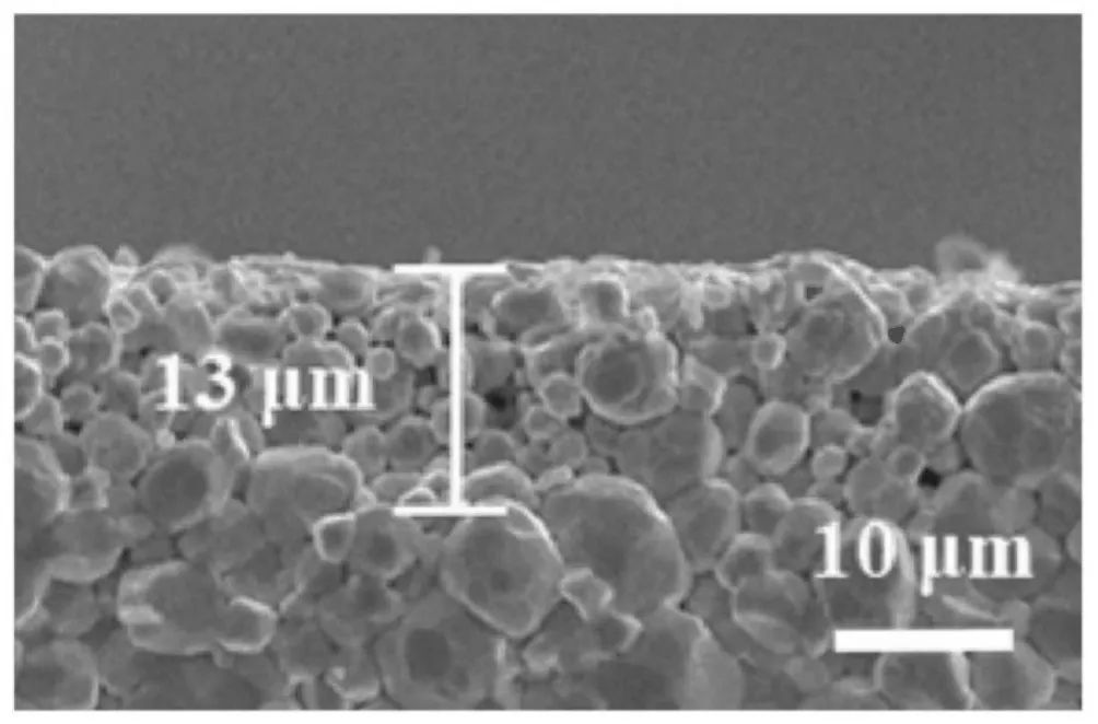下图显示了蚀刻(1 M HCl)后固态电解质表面的多孔形态,有≈13 μm深的多孔层。